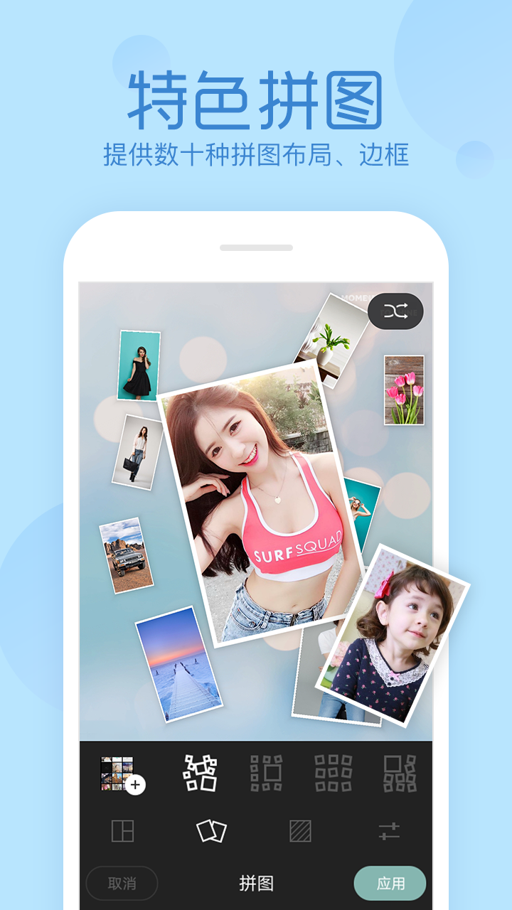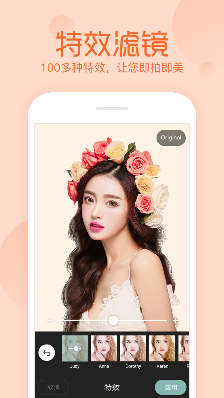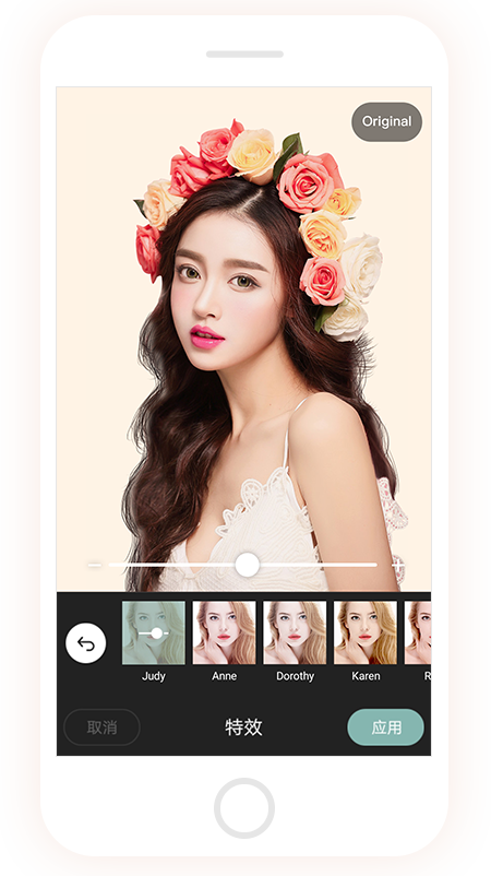 超专业的美颜工具,纤细体型、软化等 ;提供多达5级美颜强度,让您的皮肤完美呈现;提供多种自拍美肤特效,让您的肌肤晶莹剔透